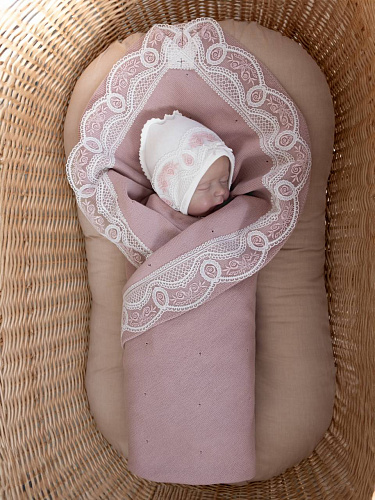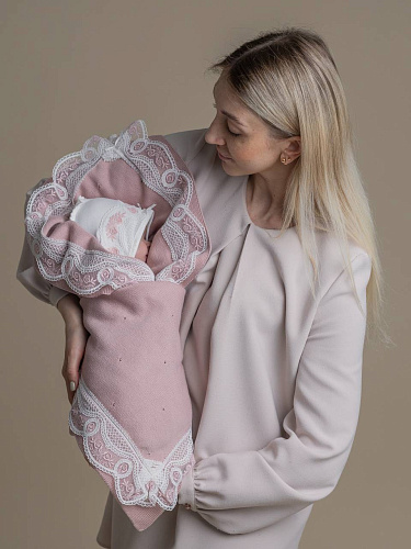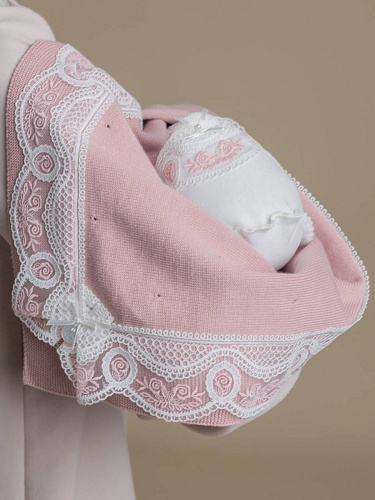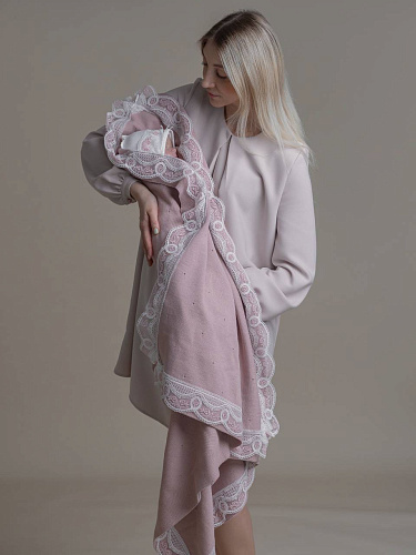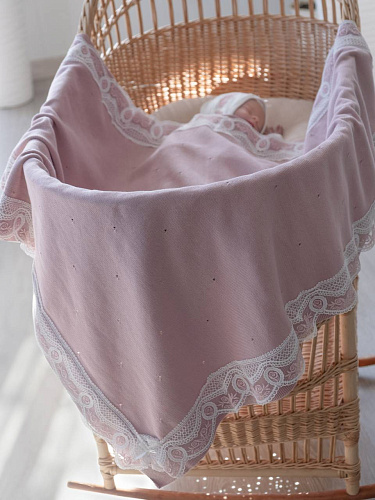 Плед с кружевом, цв. пудра