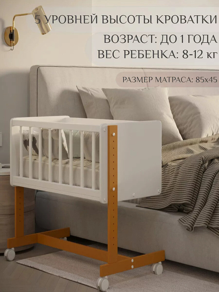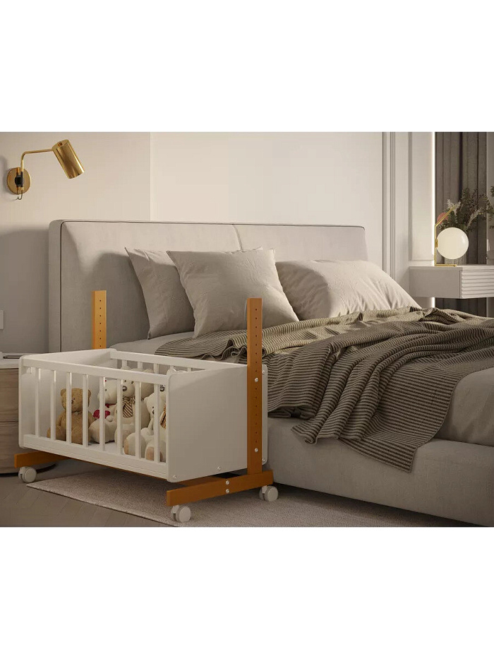 Современная колыбелька Incanto имеет очень компактные размеры, а так же колесики для удобного перемещения кроватки. Она прекрасно подойдет для использования в совсем ограниченном пространстве или как дневная кроватка, которую легко перемещать по комнате, дому. Один бортик кроватки съемный , что позволит использовать модель как приставную. Специальные ремешки позволят зафиксировать кровать рядом со взрослой, препятствуя появлению зазоров между кроватями.Кроватка имеет множество регулировок по высоте, что позволит идеально подобрать необходимую для вас высоту спального ложа. Когда ребенок вырастет из кроватки ее можно использовать как оригинальное, современное место для хранения игрушек. За счет стильного дизайна такой предмет мебели отлично впишется в любой интерьер. Можно использовать как диванчик, кушетку или даже стол