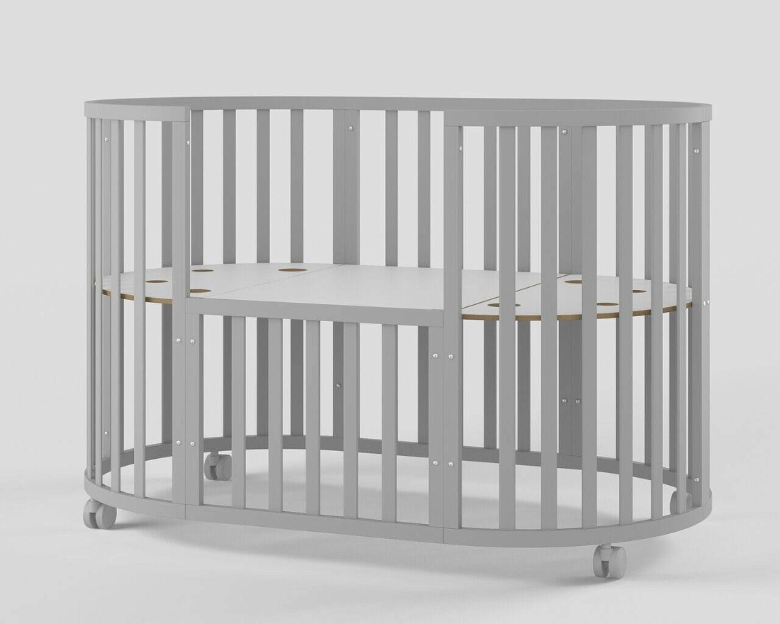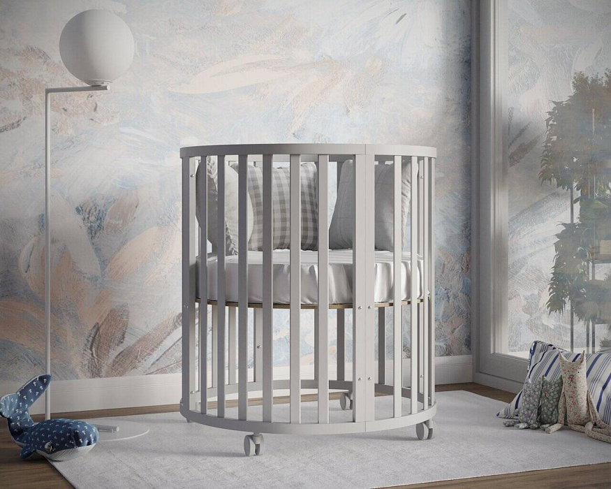 Кроватка-трансформер Северная Звезда 9 в 1. Детская кровать в круглом формате с колесами достаточно легкая, но из прочной, экологичной древесины. Мамы с легкость смогут передвигать кроватку хоть каждый день. У данной кроватки отсутствуют острые углы, что сводит к минимуму риск травм. Верхние радиусы круглой и овальной формы оборудованы специальными силиконовыми накладками-грызунками, которые защищают детские зубки. По мере того, как растёт малыш, вместе с ним растёт и кроватка! При изготовлении кроватки используются натуральные экологичные материалы, высококачественные лаки и краски.