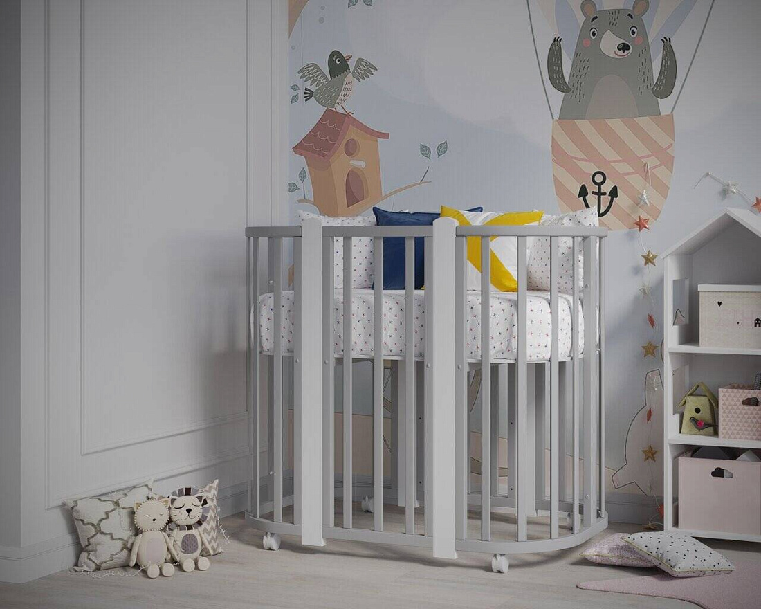 - Овальная форма кроватки предназначена для детей от года до пяти лет.