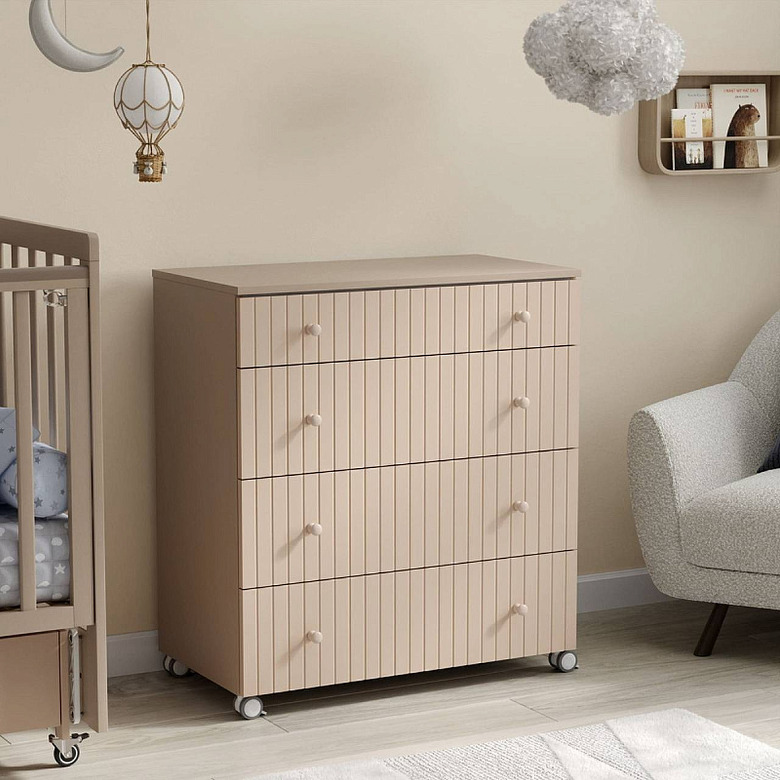 • Фасады имеют вертикальную фрезеровку, которая придает комоду дополнительного шарма.