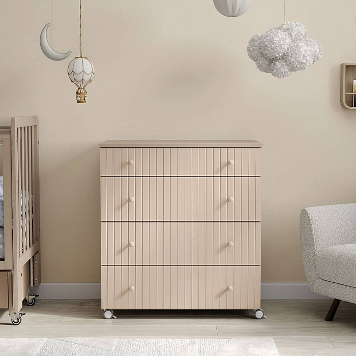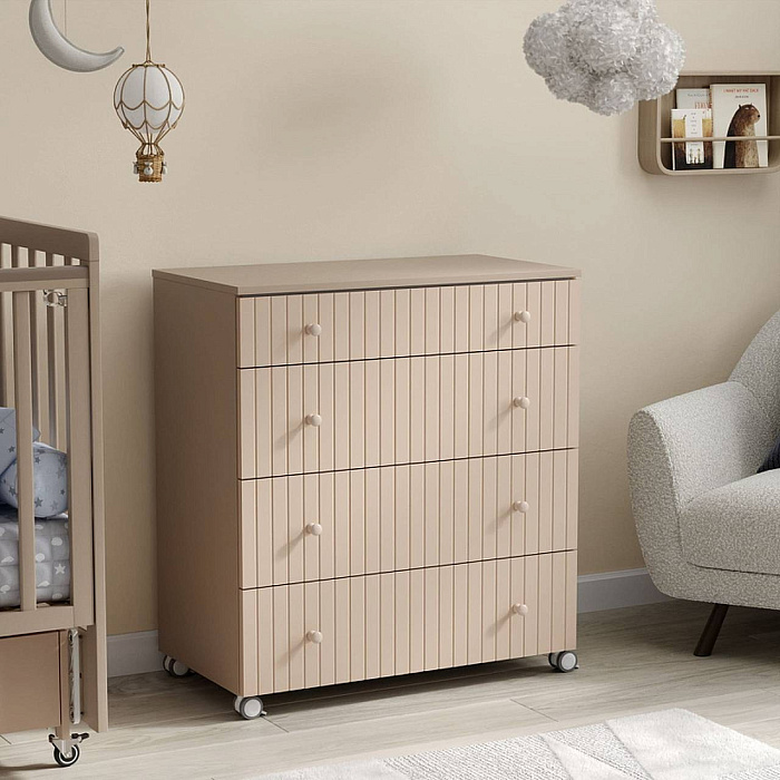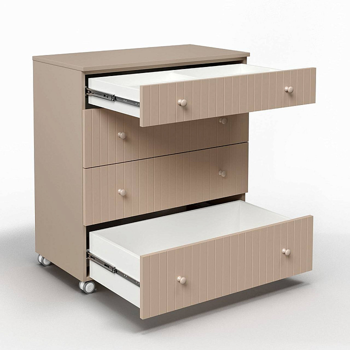• Комод имеет колеса со стопором, которые позволяют перемещать его по комнате или просто отодвинуть, для мытья полов. Даже женщина с легкостью с этим справится.