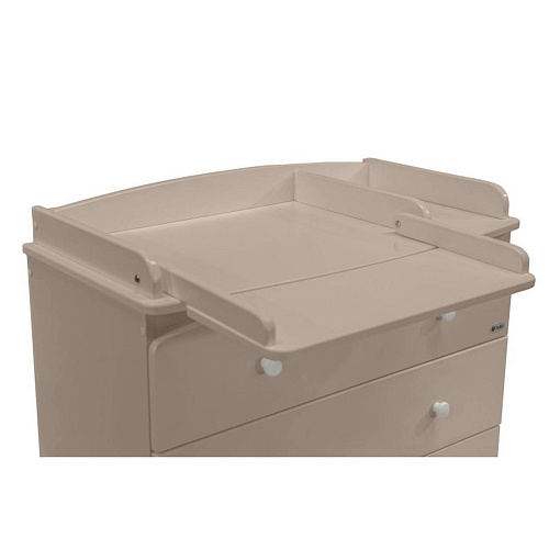 Пеленальный столик с откидной крышкой легко устанавливается справа, слева или посередине комода.