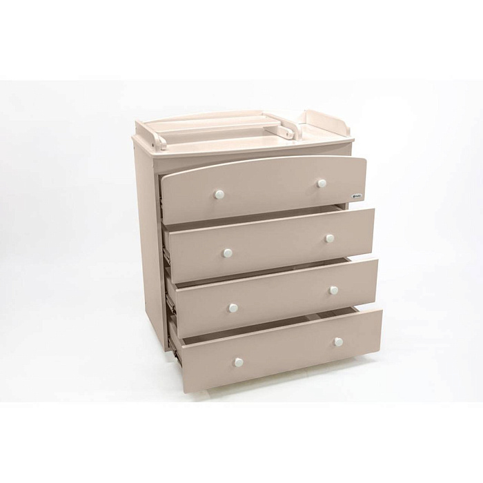 Четыре больших ящика с бесшумным механизмом открывания/закрывания. Размеры 730х350х100 мм. Поместится много подгузником, ползунком, милых распашенок, носочком и других нужных и полезных вещей.