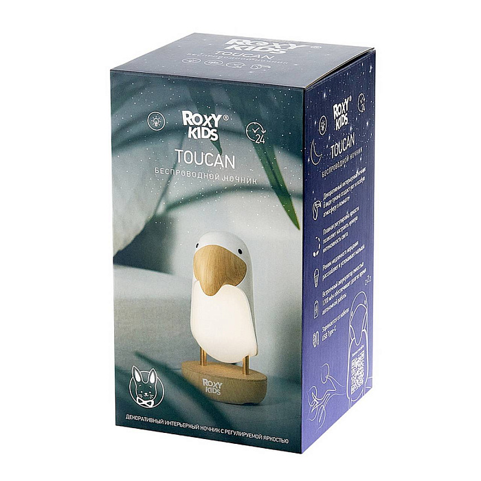 Декоративный интерьерный ночник в виде тукана создаст особую атмосферу в комнате ребенка и сделает любой интерьер уютнее. Благодаря приветливому дизайну ночник поднимает настроение малышу, успокаивает и помогает заснуть. Плавная регулировка яркости позволяет настроить нужную интенсивность света, последняя настроенная яркость сохраняется в памяти ночника. Ночник поддерживает два режима: режим постоянного свечения и режим медленного мерцания. Встроенный аккумулятор емкостью 1200 мАч обеспечивает долгое время автономной работы ночника. Ночник заряжается при помощи кабеля USB Type-C, что делает процесс зарядки очень удобным. Световой индикатор позволяет определить, когда ночник полностью заряжен. В комплект входит подробная инструкция на русском языке. Ночник поставляется в яркой премиальной упаковке, поэтому идеально подходит для подарка!