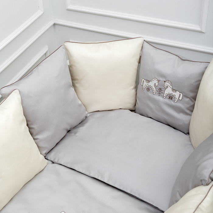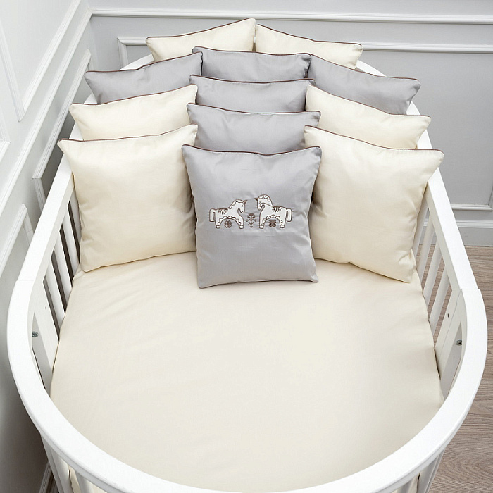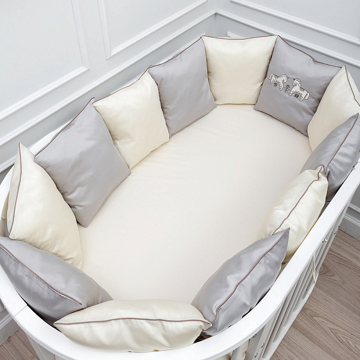 Комплект 6 пр.д/овал. и круглой кроватки "Коники-сны", цв. серый