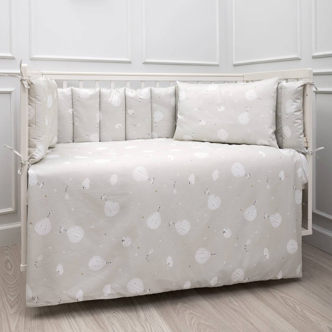 Комплект для прямоугольной кроватки 6 пр."Сказочный полет", цв. бежевый