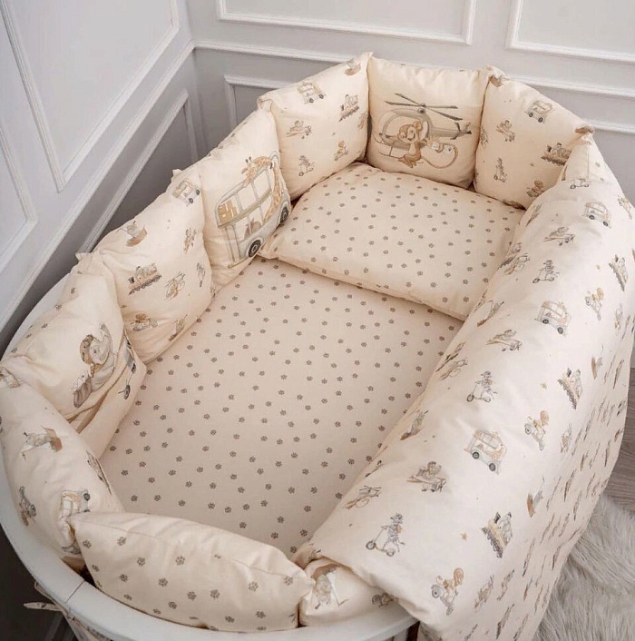 Комплект для овальной и прямоугольной кроватки 6 предметов "Письмо другу", цв. бежевый