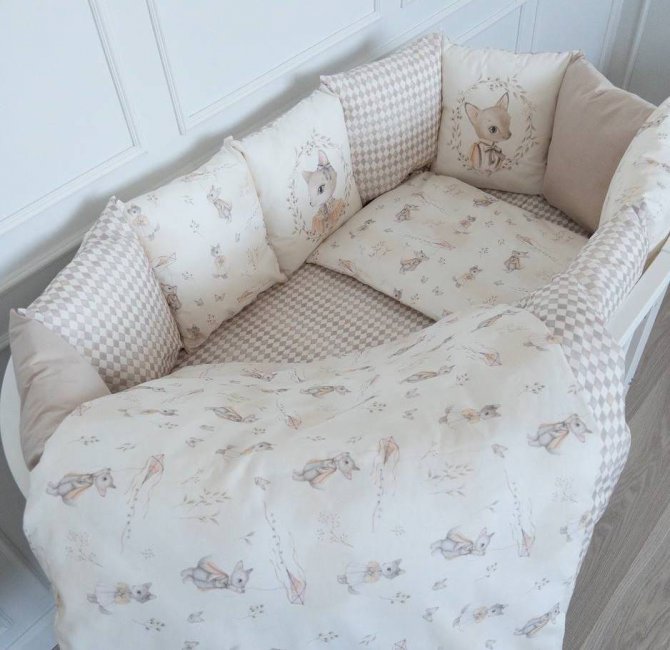 - Бортик из 12 подушечек, 30*30 см, съемные чехлы что делает уход за ним очень простым и удобным. Наполнитель подушечек зашит в дополнительный внутренний чехол и не нуждается в регулярной стирке.