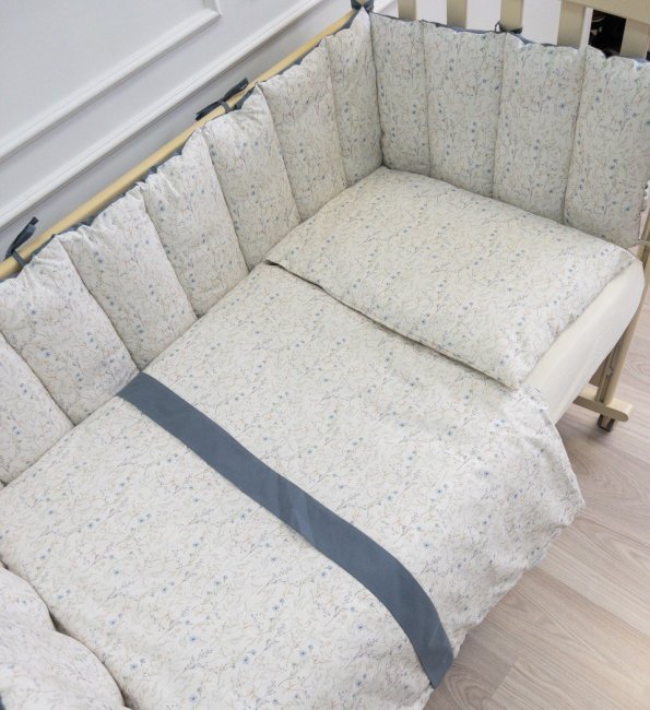 Комплект для прямоугольной кроватки 6 предметов "Lapetti garden", цв. серо-голубой