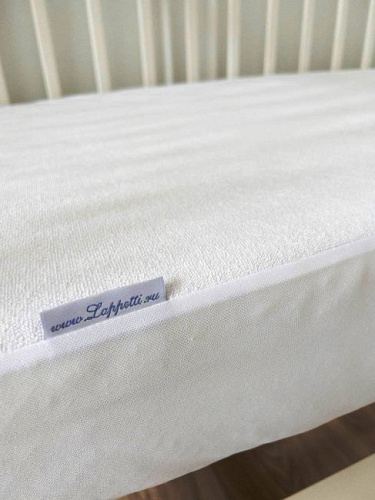 Окантована тесьмой, по углам вшита резинка для надевания на матрас.