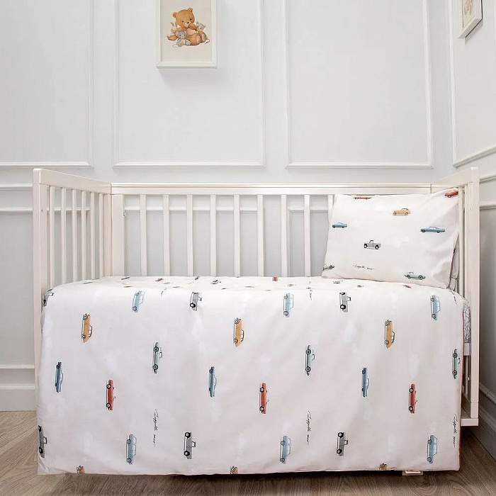 Комплект для кроватки "Маленький гонщик", цв. серо-голубой
