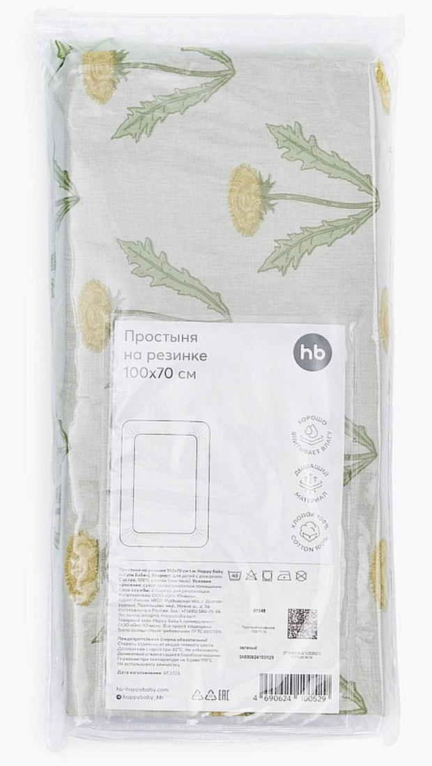 Простыня на резинке 100х70 см, цв. зелёный