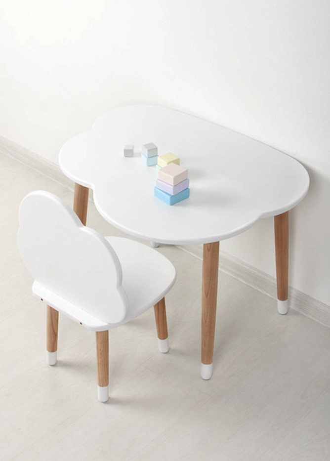 Детский стул со спинкой в форме облачка — красивый и прочный детский стульчик для рисования, лепки из пластилина и другого детского творчества в скандинавском стиле. Стульчик крепко стоит на четырёх ножках и обеспечивает полную безопасность во время активных настольных игр вашего ребёнка.