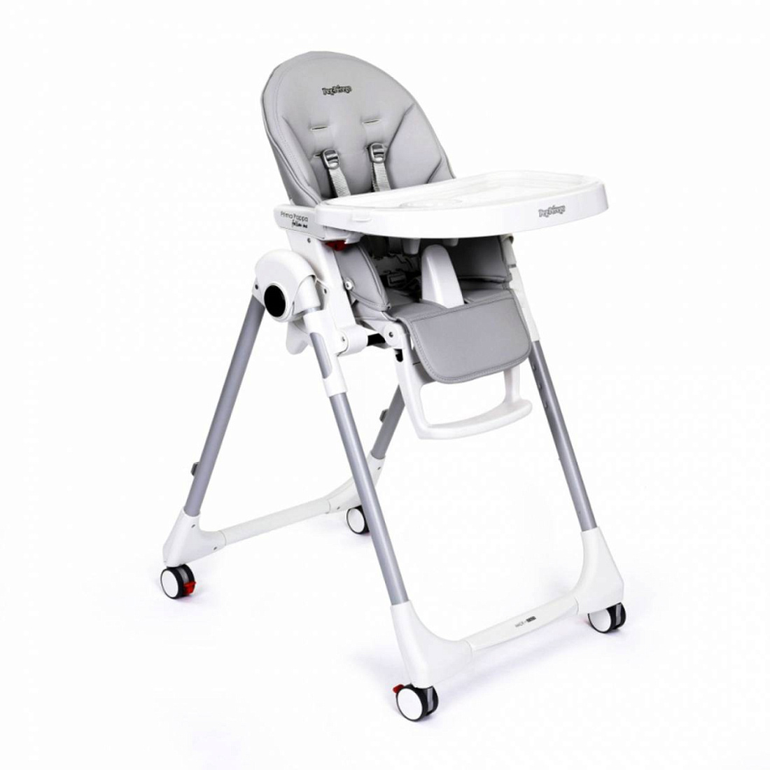 Съёмный поднос с подстаканником можно мыть в посудомоечной машине. Четыре колеса с тормозами позволяют легко перемещать стульчик по комнате и надёжно фиксировать его на месте.
