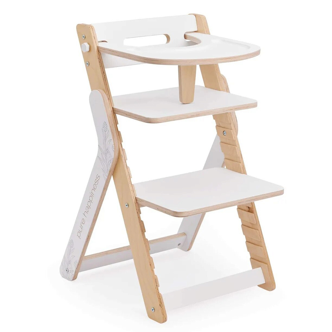 Детский стульчик CALMY — это не только функциональное сиденье для вашего малыша, но и прекрасное дополнение к интерьеру детской комнаты. Изготовленный из качественной фанеры, настраиваемые уровни высоты и съемный столик обеспечат удобство и надежность во время еды, игр, и рисования.