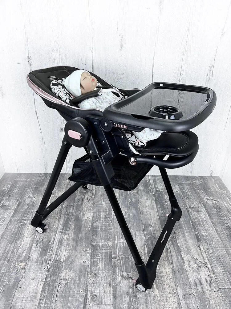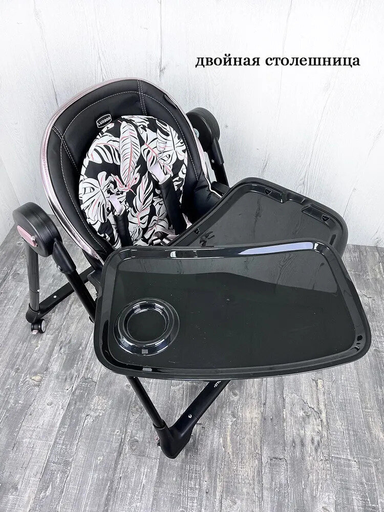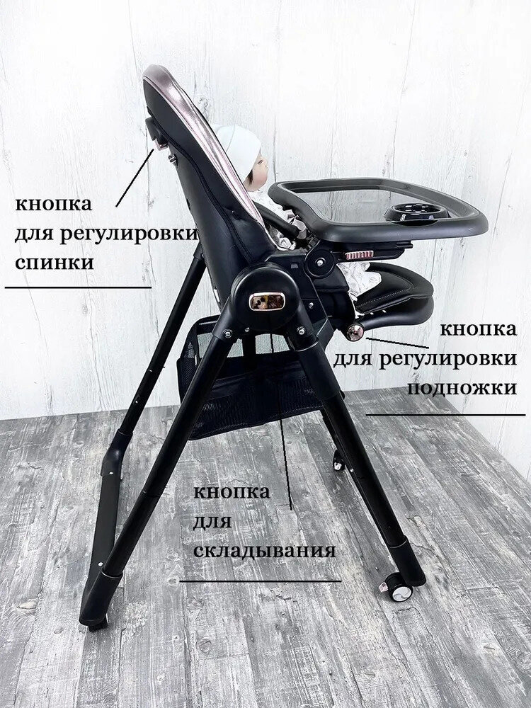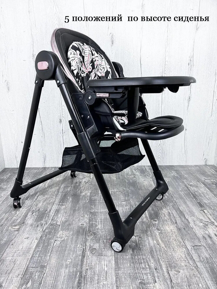 - 5 положений по высоте — позволяют подстраивать высоту стула под уровень родительского стола или опускать до уровня пола;