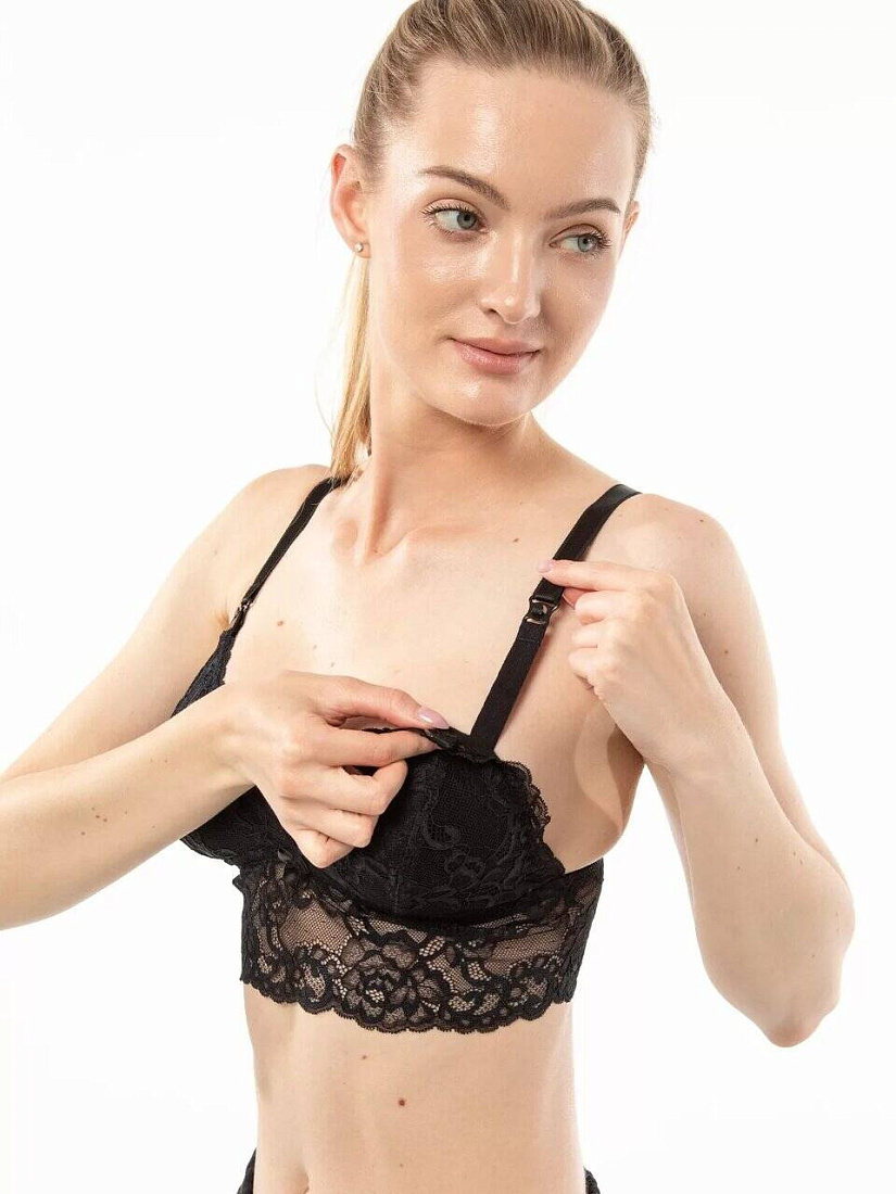 Бюст-бралетт послеродовый САНДРА. Бюстгалтер для кормления выполнен из нежного кружева в сочетании с хлопковым трикотажным полотном. без каркасов и поролона. Особая анатомическая конструкция бралетта деликатно приподнимает грудь. Бюстгальтер имеет широкую нижнюю деталь из эластичного кружевного полотна без подкладки, что делает данный бюстгальтер для кормления весьма соблазнительным. Браллет САНДРА имеет регулируемые бретели и удобные застежки для кормления .Бюстгальтер для кормящих САНДРА отлично подойдет в роддом.