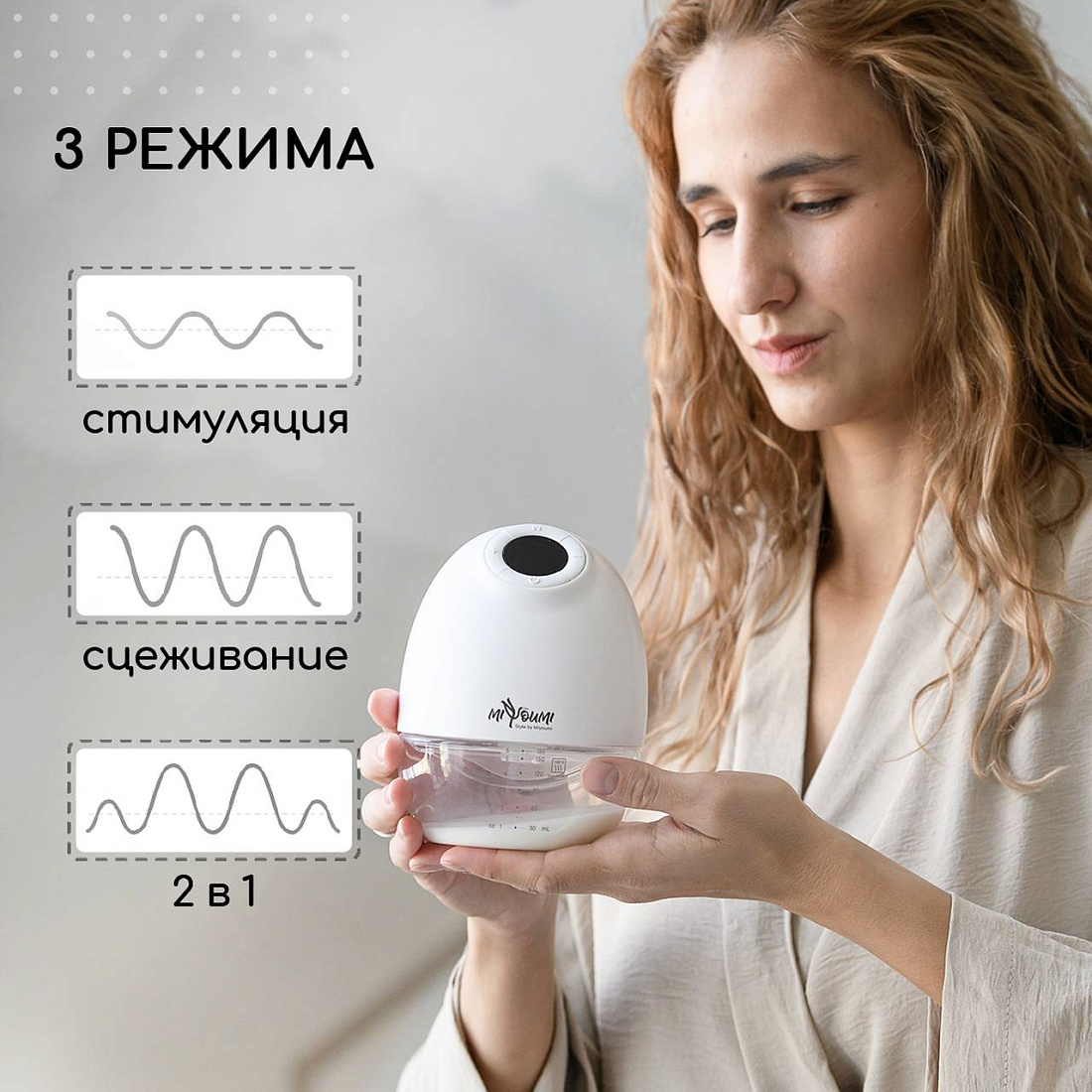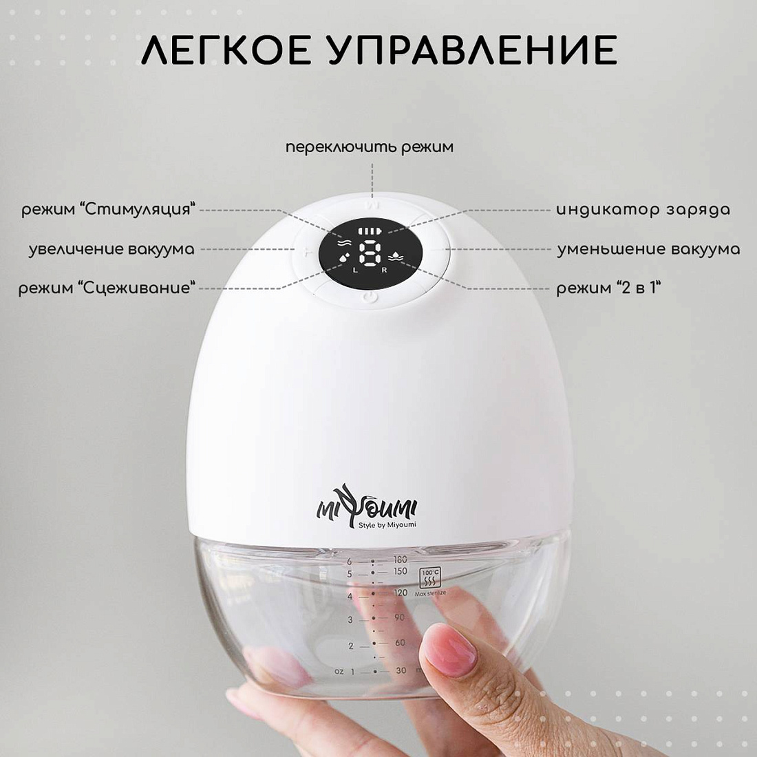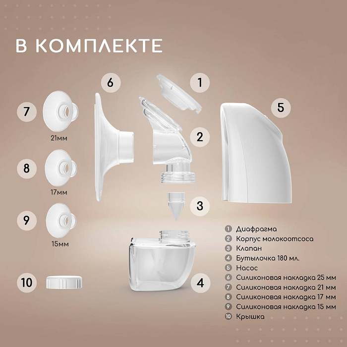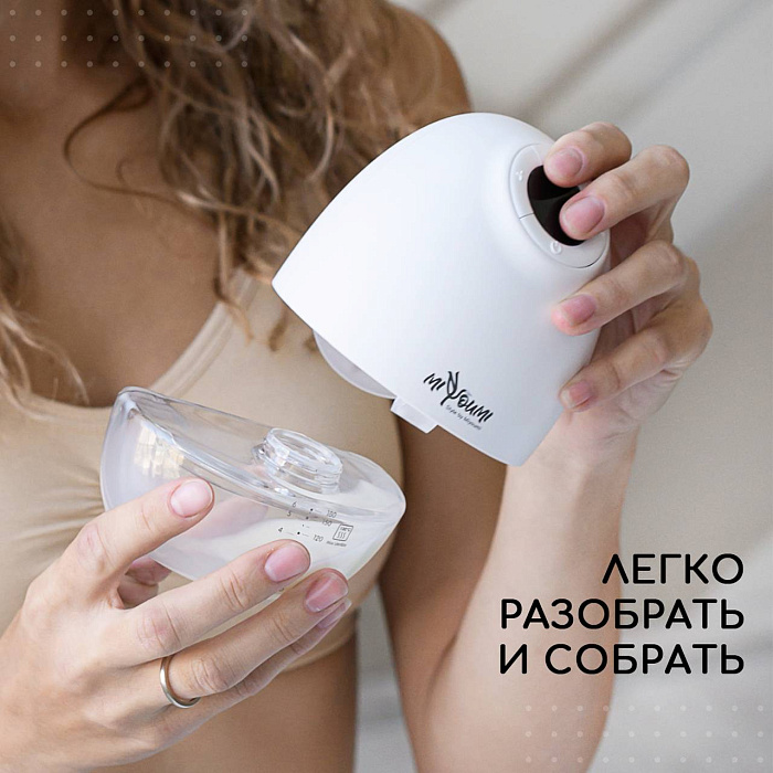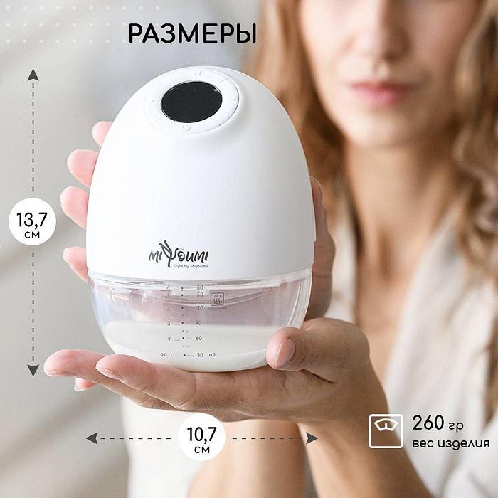 Молокоотсос электрический беспроводной - это лучшее решение для быстрого и безболезненного сбора молока! Очень многие из наших покупателей отмечают, что у них наладилась лактация и сильно прибавилось молока после использования данного аксессуара для кормления. Никаких неудобных проводов и трубок! Очень компактный, вы всегда можете взять его с собой в роддом и использовать в любом месте, на прогулке или в машине. Мощный мотор работает от емкого встроенного литиевого аккумулятора 1200 мАч (до 2,5 часов непрерывной работы), заряжается от всех возможных источников питания через USB кабель. Молокосос имеет не 2, а 3 фазы работы: Массаж, Сцеживание и Смешанный режим для самой чувствительной груди. Каждый режим работы имеет по 9 уровней интенсивности. Вы без труда найдете самый комфортный. За счет функции массажа и полной имитации сосательных движений ребенка, процесс сцеживания происходит быстро и безболезненно. Отлично подойдет для профилактики и предотвращения лактостаза. Воронка с силиконовой окантовкой отлично прилегает к груди, создавая безупречный вакуум, имеет универсальный угол охвата и подойдет для всех размеров груди. Молокоотсос имеет удобный сенсорный блок управления с подсветкой, индикатором заряда, таймером и функцией памяти выбранных ранее настроек. Работает тихо (50 дцб), что позволяет использовать его в любое время суток даже когда рядом спит малыш. Минимум деталей, очень легко разбирать, собирать и мыть. Молокоотсос выполнен из самых современных и безопасных материалов. Никакого неприятного запаха от пластика. Не содержит Бисфенол А. В комплекте емкость на 180мл из тритана , кабель USB, инструкция на русском, дополнительный клапан, гарантийный талон.