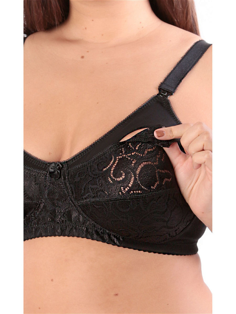Бюстгальтер послеродовый хлопок кружевной, цв. чёрный, р. 75C