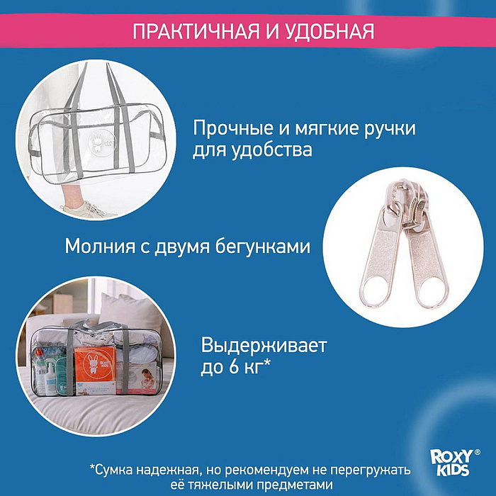 Прозрачная сумка в роддом - это необходимый аксессуар для каждой будущей мамы. Вместит в себя все вещи и предметы для мамы и малыша, которые могут пригодиться в роддоме. У сумки мягкие ручки и удобная молния с двумя бегунками. Изделие сертифицировано в Eurofins и разрешено в родильных домах и лечебных учреждениях.