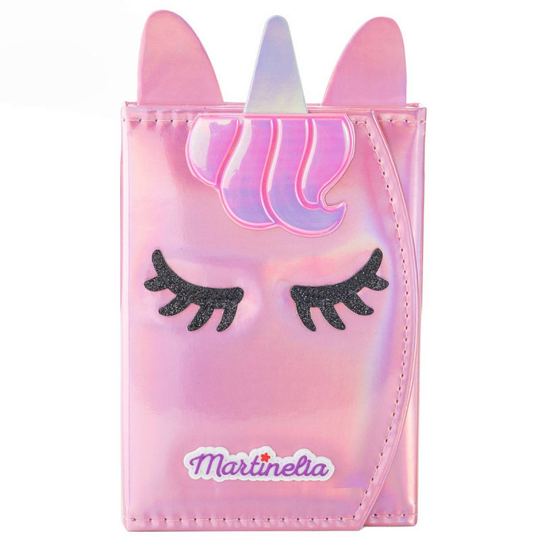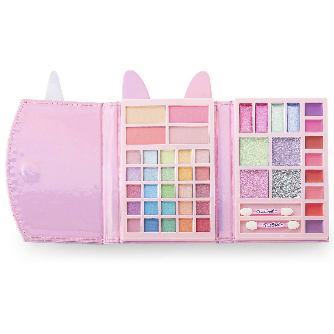Кошелек с косметикой Martinelia легко помещается в девичьей сумочке. Его дизайн – сказочное чудо, созданное специально, чтобы радовать маленьких фей. Переливающаяся розовая обложка с мечтательным единорогом так прекрасна! А еще прекраснее содержимое кошелечка – все, что нужно для детского праздничного макияжа. Мамы могут не беспокоиться: ингредиенты косметики совершенно безопасны для детей, а смывать ее можно просто водой без средств для снятия макияжа. Комплектация: 25 красочных оттенков сухих теней, 8 кремовых глиттеров, 4 оттенка румян и 8 блесков для губ.