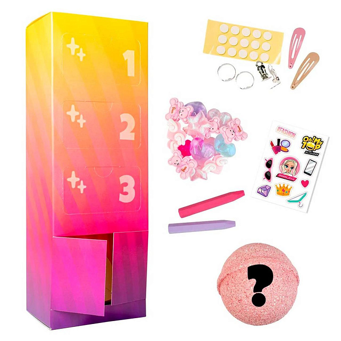 В наборе есть все, чтобы повторить образ любимой куклы и сделать игровой процесс интересным: шармы, из которых можно сделать множество аксессуаров, мелки для волос, яркие стикеры, а также сюрприз в виде пенной бомбочки с секретным питомцем внутри.