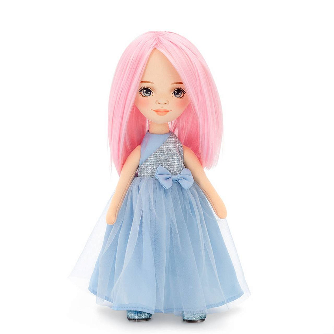 Подружки устраивают вечеринку, именно поэтому Билли такая нарядная. Она выбрала нежно-голубое платье, которое так волшебно подчеркивает цвет ее необычных волос. Пышная юбка из атласа и воздушного фатина, лиф с блестящим люрексом и изящный бантик в цвет платья. Образ завершают сияющие голубые туфельки. Билли кружится и сверкает как настоящая фея!