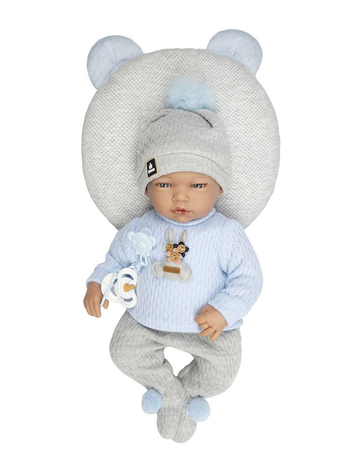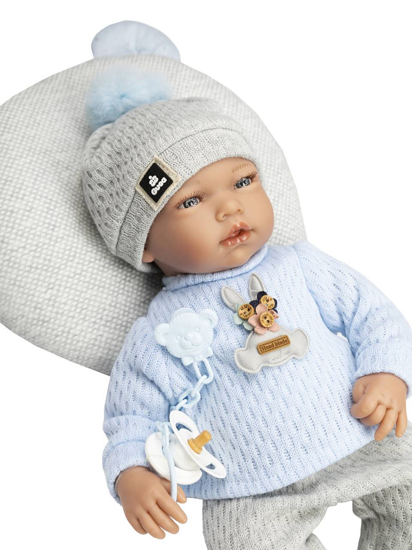 Кукла Марко, синий шерстяной свитер с отделкой на груди в виде серого кролика, серые шерстяные брюки и шапка с синими помпонами. В качестве дополнения она носит серую подушечку с синими ушками и соску на цепочке. Рост 38 см. Его тело изготовлено из ткани, а конечности — из виниловой резины. Не рекомендуется для детей младше 3 лет.