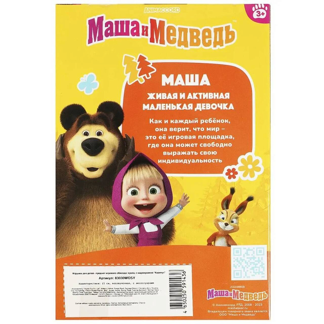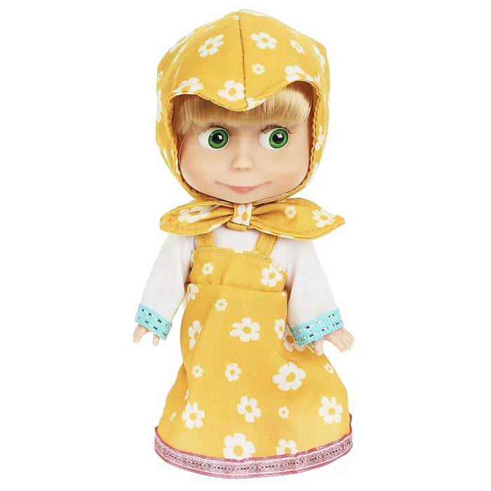 Маша одета в жёлтый сарафан с цветочным принтом и белую рубашку. Образ куклы дополняет косынка на голове. Одежду легко снять и надеть. С Машей можно пойти на прогулку, путешествовать и, конечно, весело играть, делая все дела вместе. Для более интересной игры в наборе с Машей предусмотрены дополнительные аксессуары, которые помогут делать любимой кукле красивые причёски.