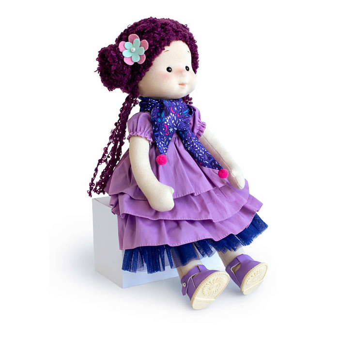 С Тианой её игрушка – кошечка Черничка с глазками цвета весеннего гиацинта, с шерсткой из буклированного трикотажа фиолетово-синего цвета и бантиком на шее малинового цвета с серебристым люрексом по краю.