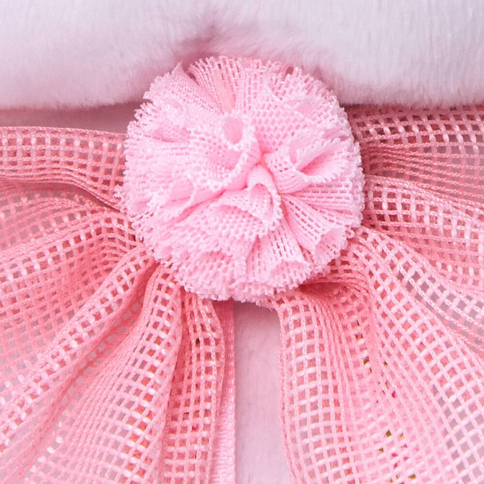 На Ли-Ли объёмный, лёгкий бант цвета розовой воды. Бант украшен розовым помпоном и брендированной лентой.