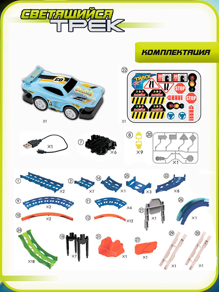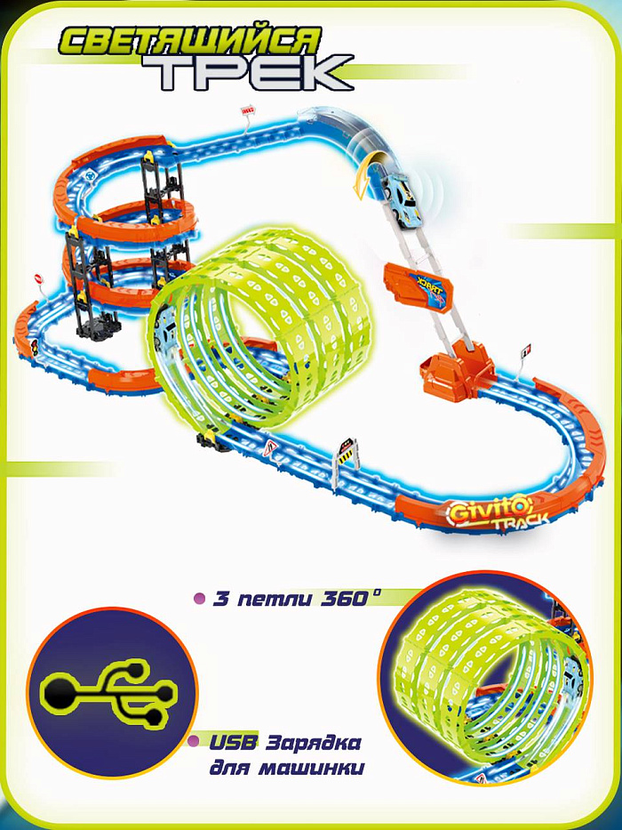 Cветящийся автотрек-игрушка с машинкой-перевертышем