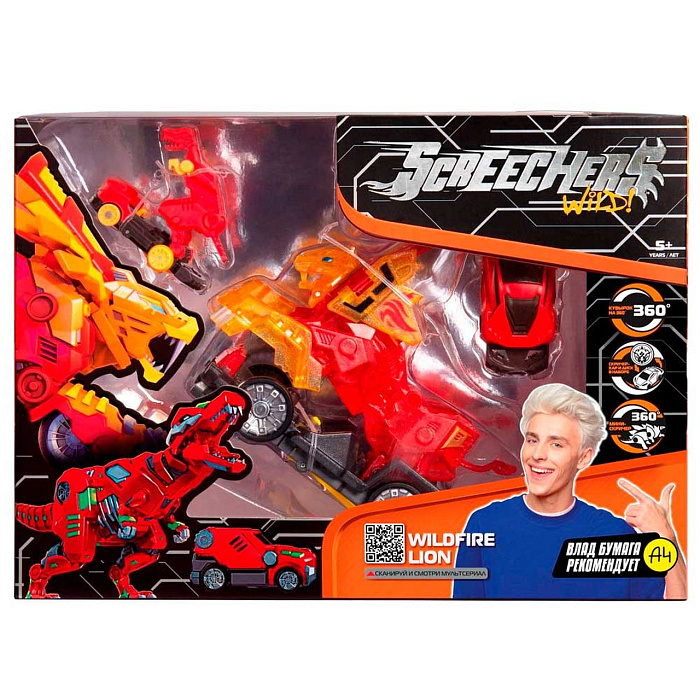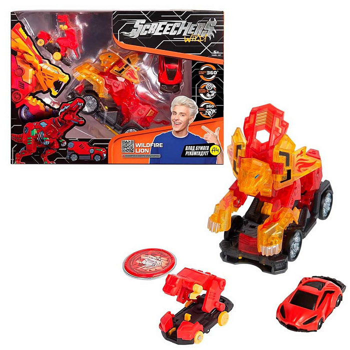 В команде скричеров LEVEL 3 новый герой – минискричер! Усиль свой баттл еще одной трансформацией! Скричер LEVEL 3 делает кувырок на 360° и совершает трансформацию. Теперь можно самостоятельно выбирать элемент трансформации. Усиленный скричер-диск 4 сезона или скричер-кар для продолжения баттла в гонке, а также минискричер! Он тоже делает кувырок на 360° и трансформируется без помощи диска. Машинка-трансформер Вайлдфаер Лайн превращается в саблезубого льва! Устрой баттл – стань крутым скричером!В набор входит машинка-трансформер (после трансформации: 14х8х12 см), энергетический диск, скричер-кар, минискричер, коллекционная карточка. Игрушка упакована в коробку с окном (18х10х25 см). Играть со Скричером можно где угодно, никаких дополнительных приспособлений не требуется. Машинка-трансформер выполнена из высококачественного материала, товар сертифицирован.