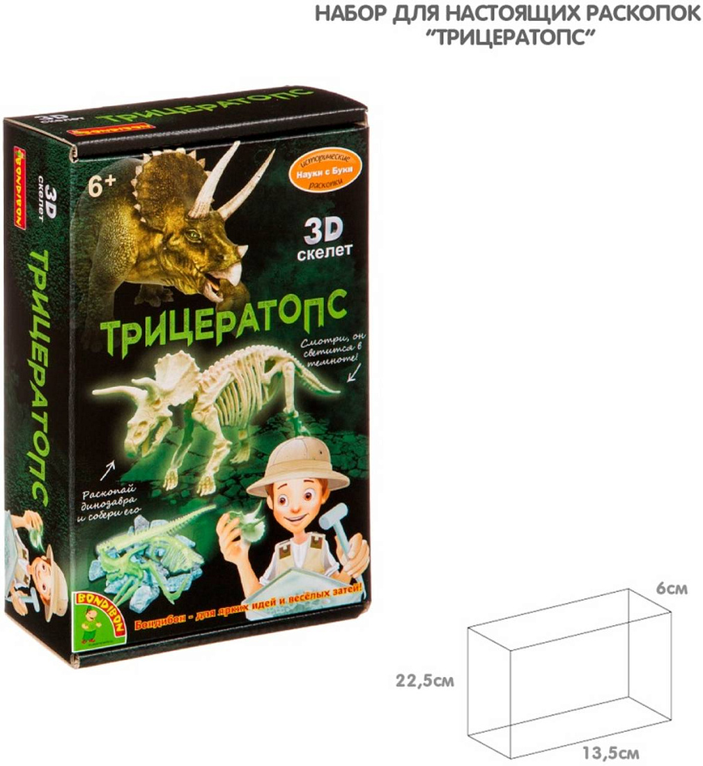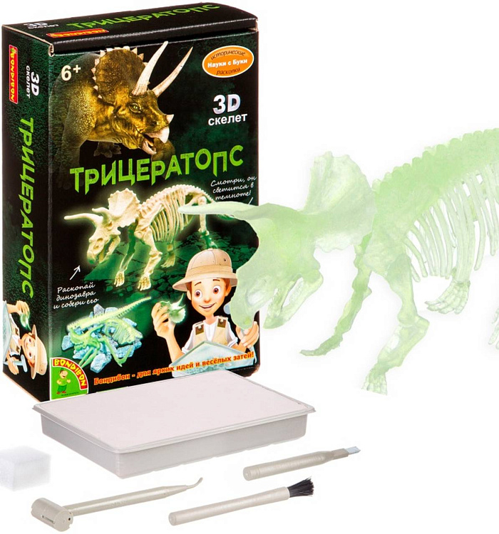 Исторические раскопки Науки с Буки BONDIBON Трицератопс (светящийся в темноте)