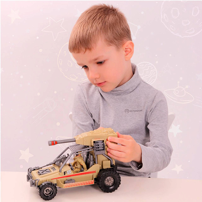 Игрушка выполнена в виде космического корабля с многочисленными отсеками, которые ребенок с интересом будет исследовать, открывая их. В головной отсек легко поместится фигурка космонавта в скафандре, которая станет главным персонажем игр с космическими приключениями.
