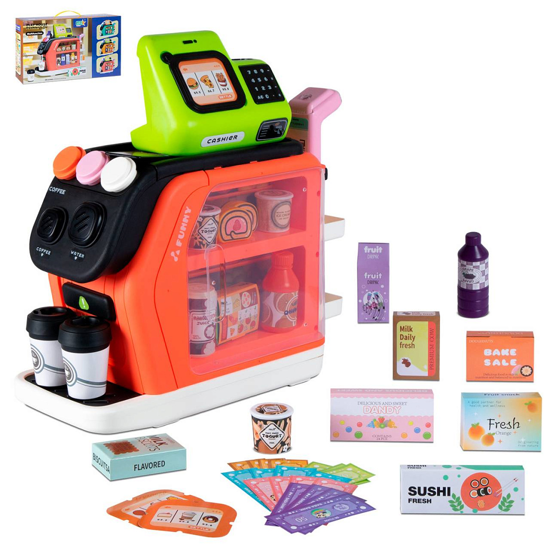 Яркий и многофункциональный игровой набор "Магазин напитков" станет отличным подарком для детей, которые любят ролевые игры и хотят почувствовать себя настоящими бариста или продавцами в уютном кафе. В комплекте есть всё, чтобы создать атмосферу настоящего кофейного магазина: стильный прилавок с удобными полочками и красочной вывеской, реалистичный кофемашина, современная касса с работающим POS-терминалом и сканером для товаров, а также множество аксессуаров – игрушечные банки с напитками, сладости, кредитная карточка и купюры для расчётов.