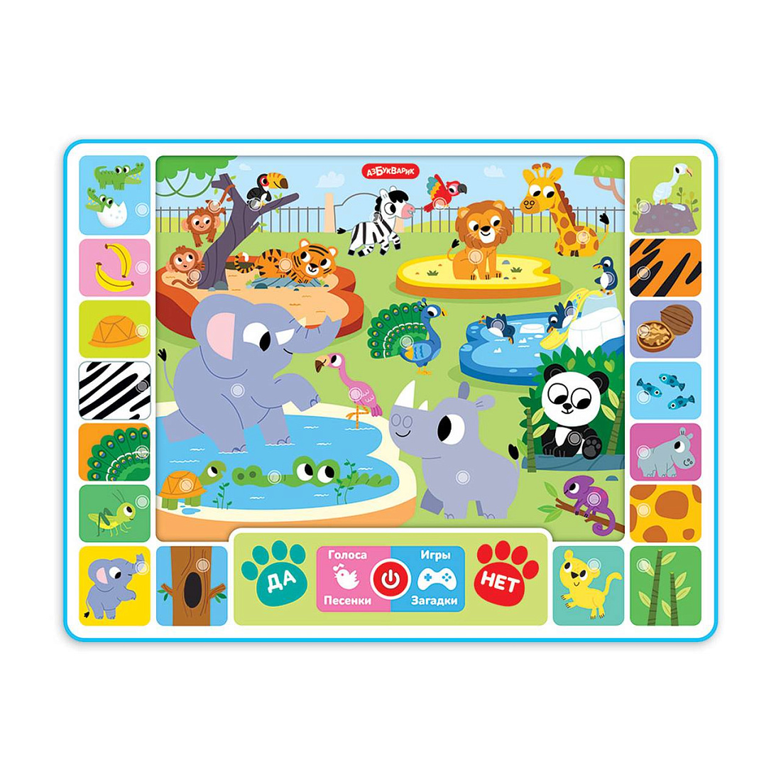 «Играем в зоопарке» – это не просто обучающий говорящий планшетик, это настоящий интерактивный зоопарк для детей! В нем ребенок найдет 6 игровых режимов, более 100 вопросов и заданий и 30 веселых песенок.