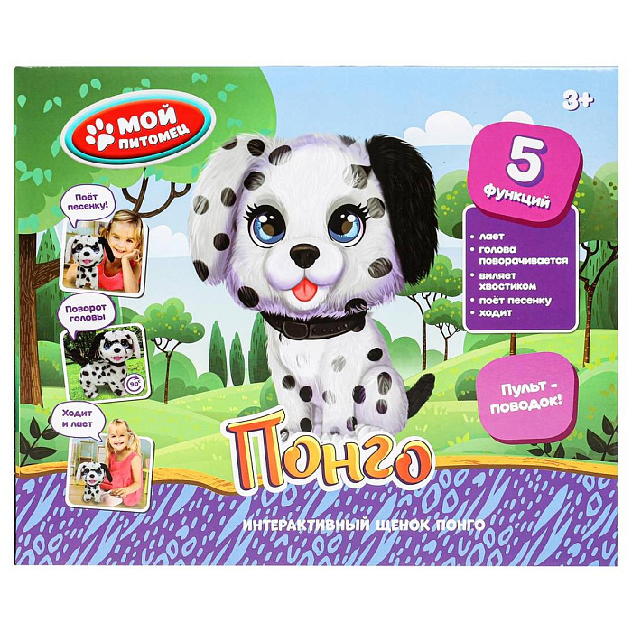 Этот очаровательный щенок совсем как настоящий. У Понго красивые глазки и умилительная мордочка. Пятнистая шёрстка щенка очень приятная на ощупь. На Понго надет стильный голубой ошейник. Милая игрушка подарит малышу массу положительных эмоций и научит заботиться о домашнем любимице.