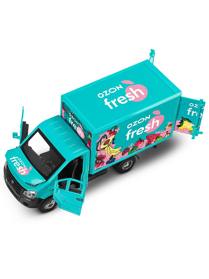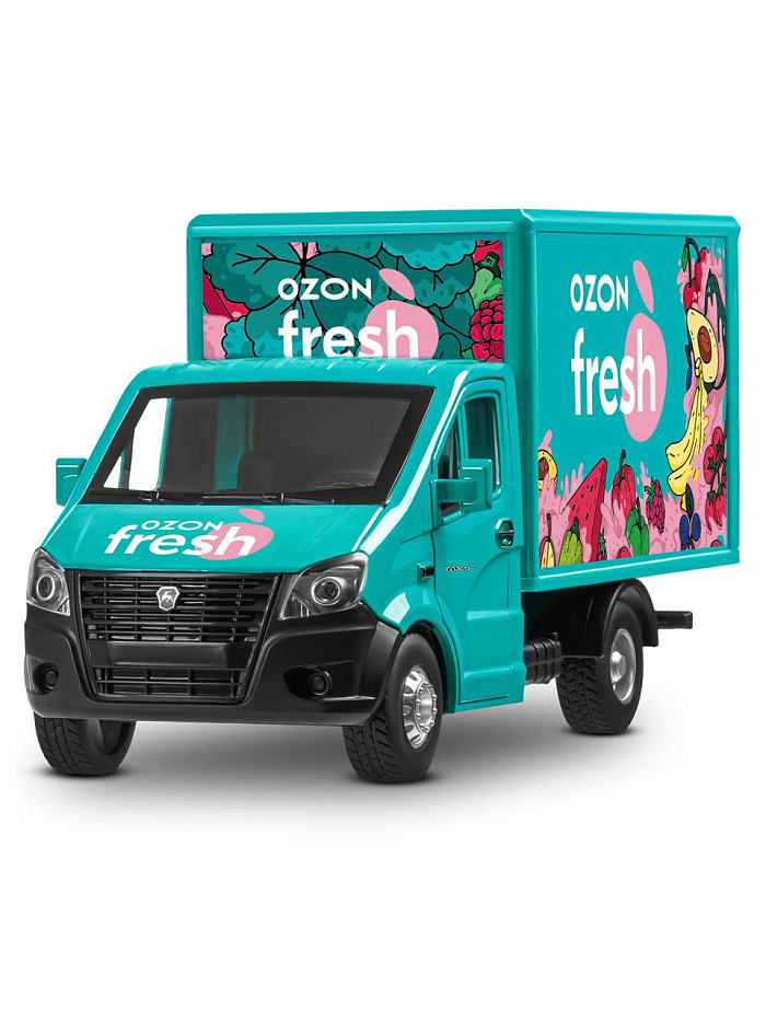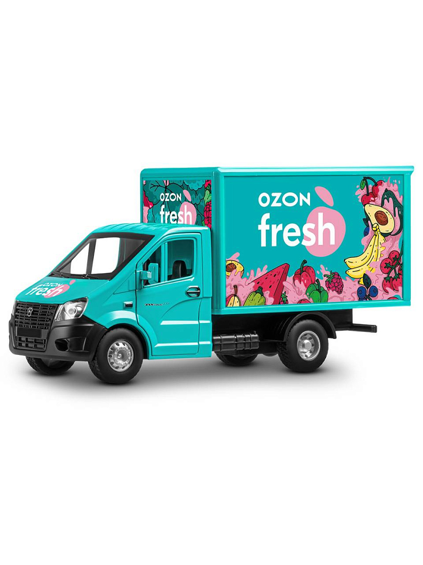 Инерционная металлическая машинка ГАЗель NEXT OZON fresh - модель в масштабе 1:28, выполненная узнаваемом дизайне бренда Ozon. С ней можно создавать множество увлекательных игровых сюжетов, связанных с доставкой товаров в игрушечном городе. Машинка станет прекрасным подарком, а также дополнит игрушечный автопарк маленького автолюбителя. Модель машинки детально проработана и выполнена в узнаваемом дизайне как у настоящих автомобилей, которые можно часто встретить на улицах. Благодаря своей реалистичности, масштабная модель подойдет для коллекционирования. У машинки открываются передние двери, капот и дверки на кузове. Внутри можно перевозить небольшие предметы. При нажатии на капот загорятся фары и включится звук, что сделает игру более реалистичной. Игрушечная машинка оснащена инерционным механизмом. Чтобы она поехала вперед, на неё нужно немного надавить и откатить назад. Колеса с резиновыми покрышками, детально проработанный салон, моторный отсек, фары, фирменная раскраска - всё как у настоящего автомобиля. Ребенок будет с удовольствием играть с такой машинкой дома и на улице, брать с собой в гости или в путешествие. Игрушка развивает мелкую моторику, реакцию и координацию движения, расширяет кругозор и знакомит с техникой.