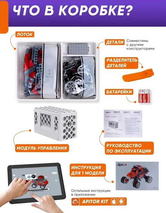 Создавайте модели и управляйте ими с помощью бесплатного приложения Apitor Kit в телефоне или планшете.