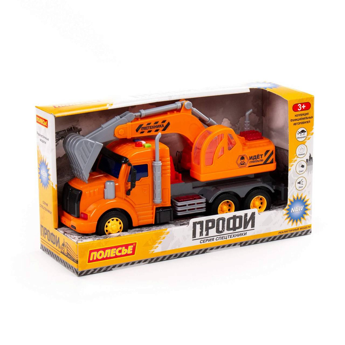 "Профи", автомобиль-экскаватор инерционный (со светом и звуком) (оранжевый)