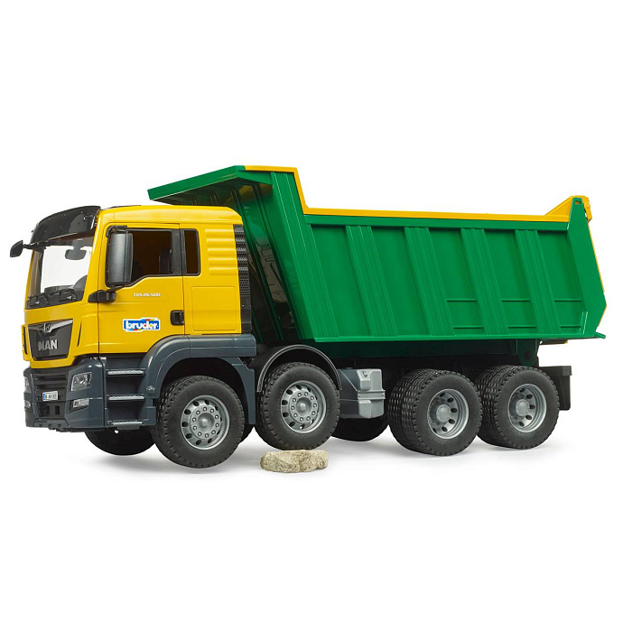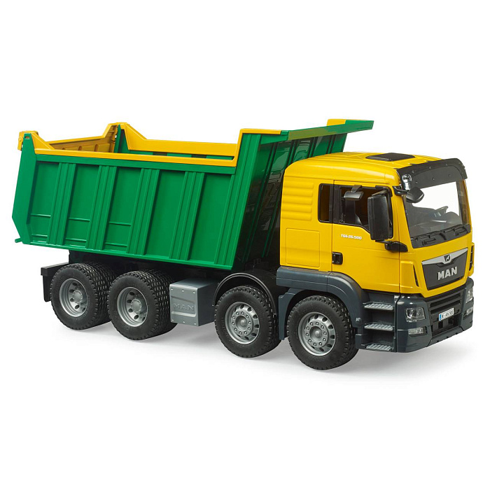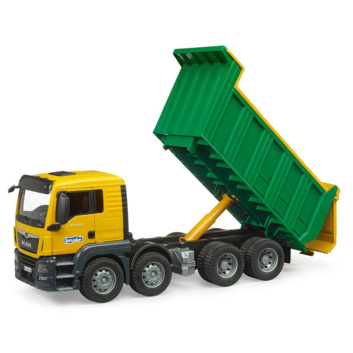 MAN TGS — идеальный универсальный автомобиль для строительных площадок, дальних перевозок и местной доставки. Благодаря прочной конструкции, мощным двигателям и грузоподъемности выше среднего, этот грузовик является прототипом часто описываемого «универсального автомобиля» с множеством инноваций на борту. Двухцветная кабина оснащена дверцами, которые можно открыть. Большой опрокидывающийся кузов для грузовиков оснащен задней дверью, которая автоматически открывается при опрокидывании груза