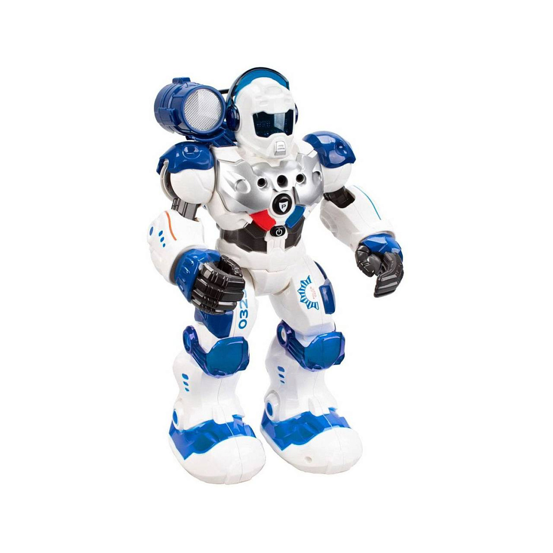 Может записывать и воспроизводить аудиофайлы длительностью до 30сек., а мощный прожектор на плече робота покажет, что происходит в самом темном углу комнаты. Фонарик работает в 2х режимах - мигающий и постоянный свет.
