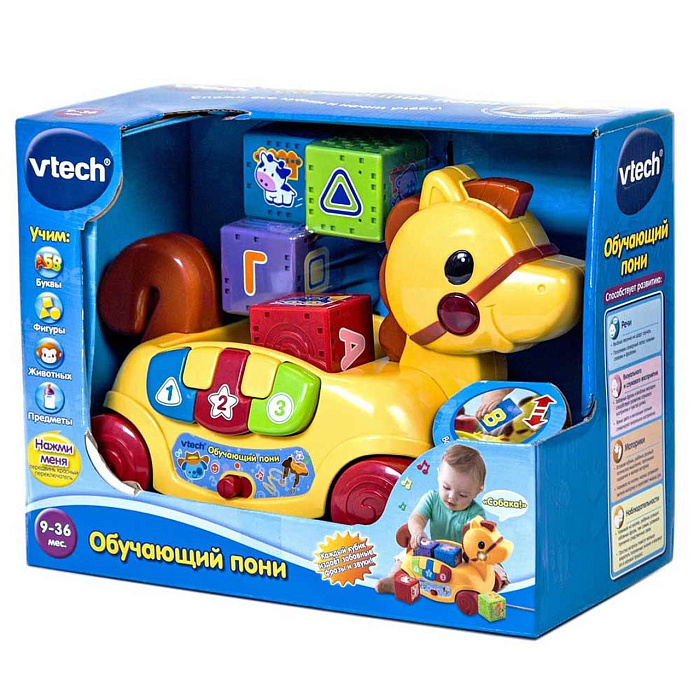 Впервые поиграть с таким пони ваш ребенок сможет уже в возрасте девяти месяцев. Изучая форму игрушки и ее характерные особенности, у него получится подчерпнуть для себя много нового и научиться различать цвета, формы, а также он начнет осваивать алфавит и простой счет.