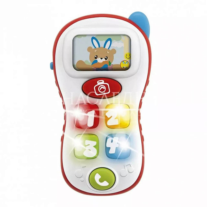 Говорящий двуязычный детский обучающий телефон Selfie Phone от Chicco учит малыша первым цифрам, словам и целым фразам на двух языках: русском и английском! Нажмите на красную кнопку с фотоаппаратом, чтобы увидеть 4 забавные картинки с милым мишкой.