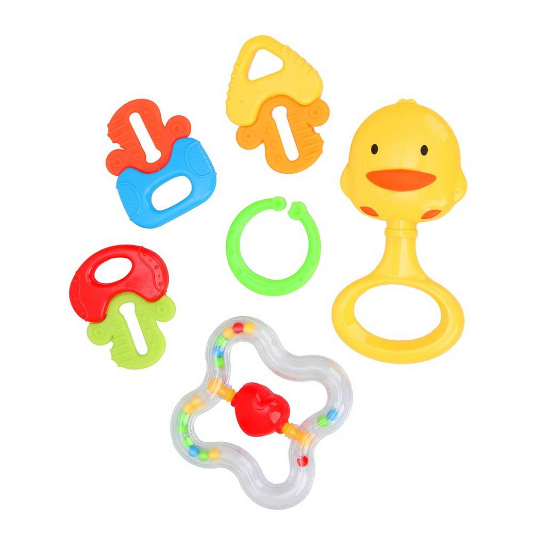 Игрушки выполнены из окрашенного в красочные цвета, прочного и гипоаллергенного материала. Симпатичный дизайн, «хватательные» рельефные элементы и гремящие шарики привлекут внимание ребёнка, который с удовольствием будет играть с такими милыми игрушками.