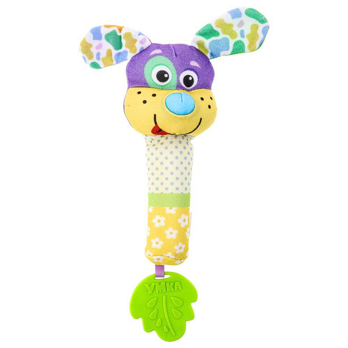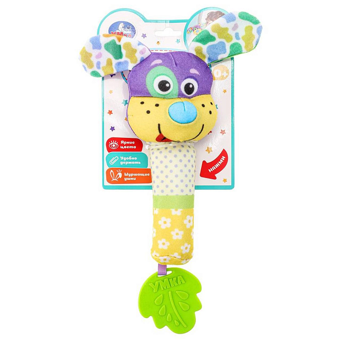 Текстильная игрушка-погремушка с пищалкой «Собачка» ТМ «УМка» разработана специально для самых маленьких: