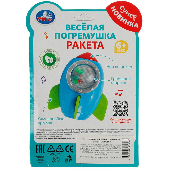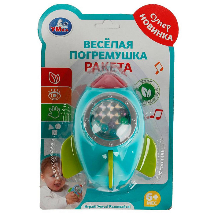 Весёлая погремушка «Ракета» ТМ «УМка» разработана специально для самых маленьких: