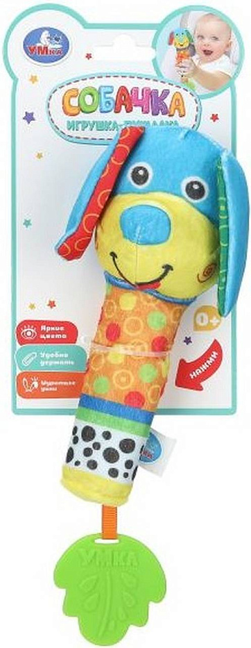 Текстильная игрушка-погремушка с пищалкой «Собачка» ТМ «УМка» разработана специально для самых маленьких: